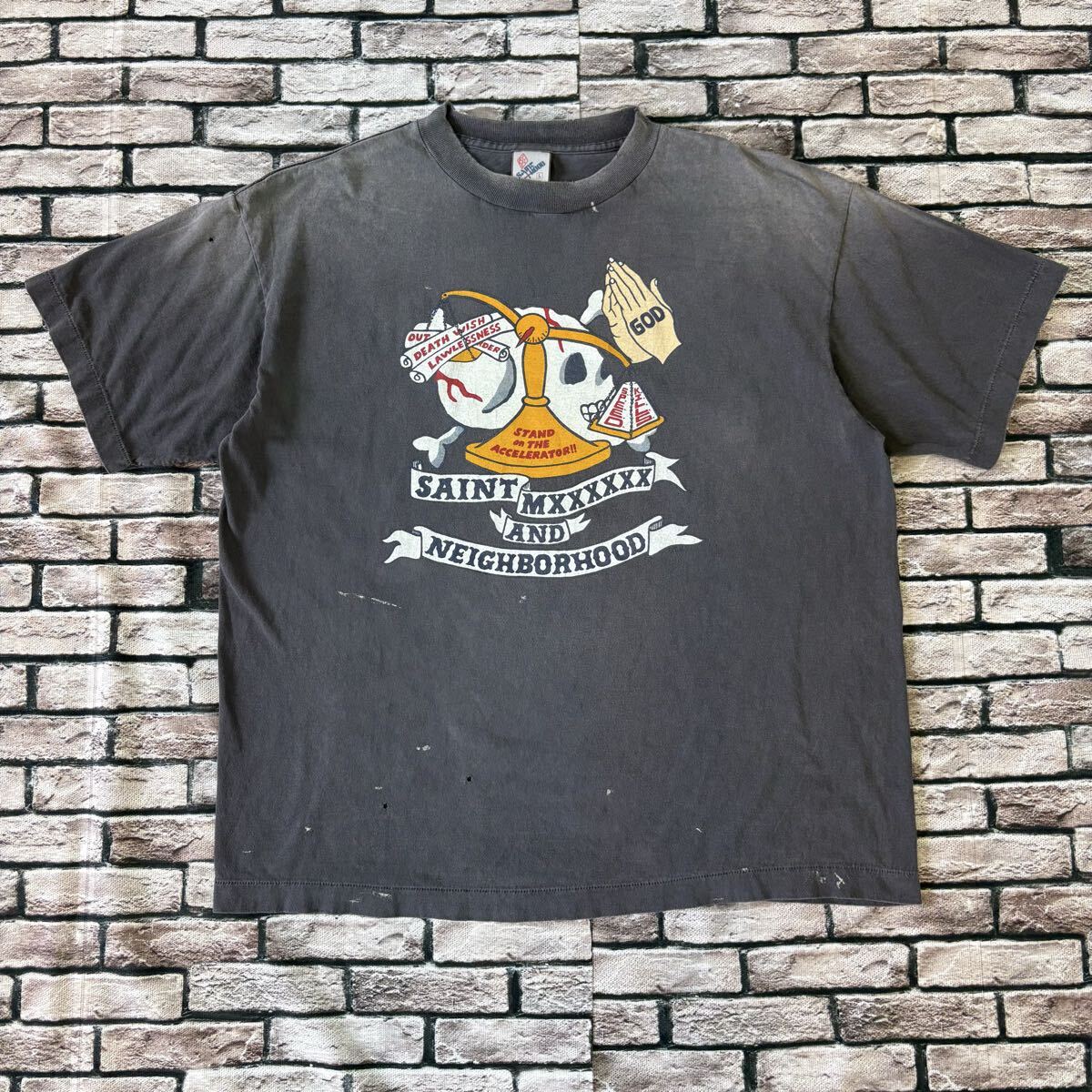 - ★SAINT MICHAEL×NEIGHBORHOOD セントマイケル×ネイバーフッド★25SS SM-HR8-0000-C68 NH SS TEE/STHD PRAY ヴィンテージ加工Tシャツ
