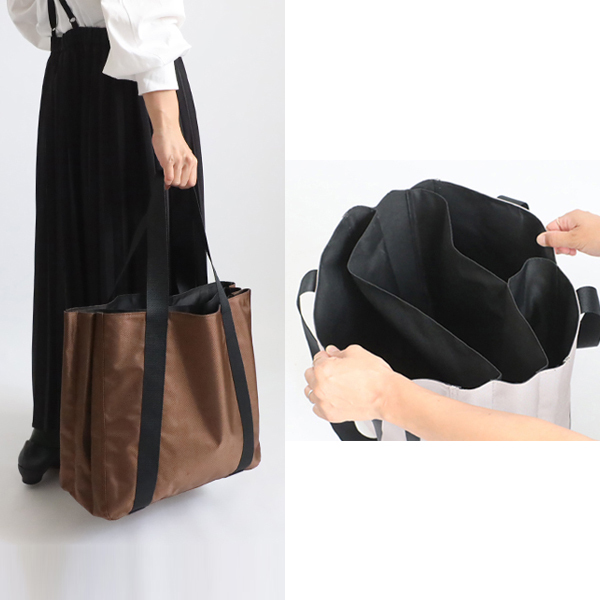 - 送料無料 秋SALE Lサイズ パラシュート防水ナイロン 間仕切りトート バッグ ブラウン P48D