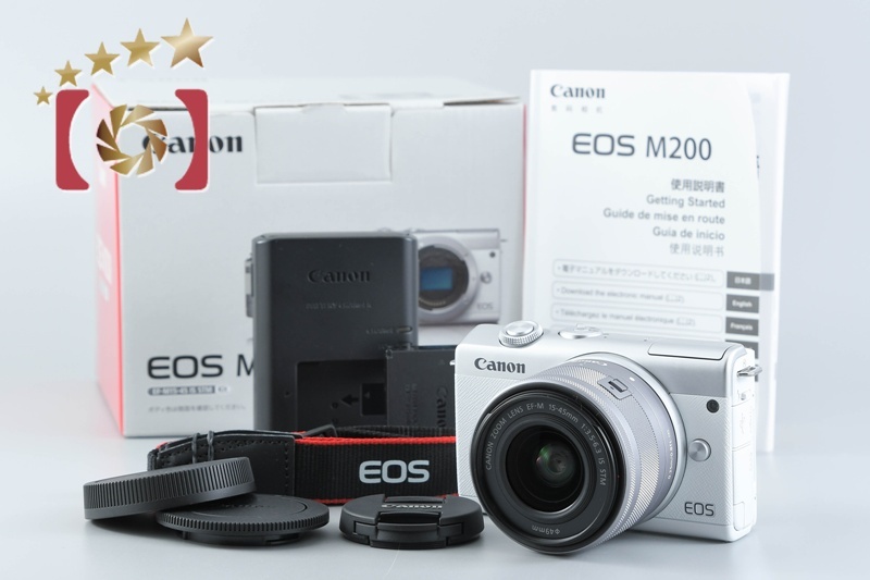 - 【中古】Canon キヤノン EOS M200 EF-M 15-45 IS STM レンズキット ホワイト 元箱付き