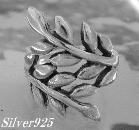 - シルバー925銀の葉リーフ ツリー リング/10号.16号より