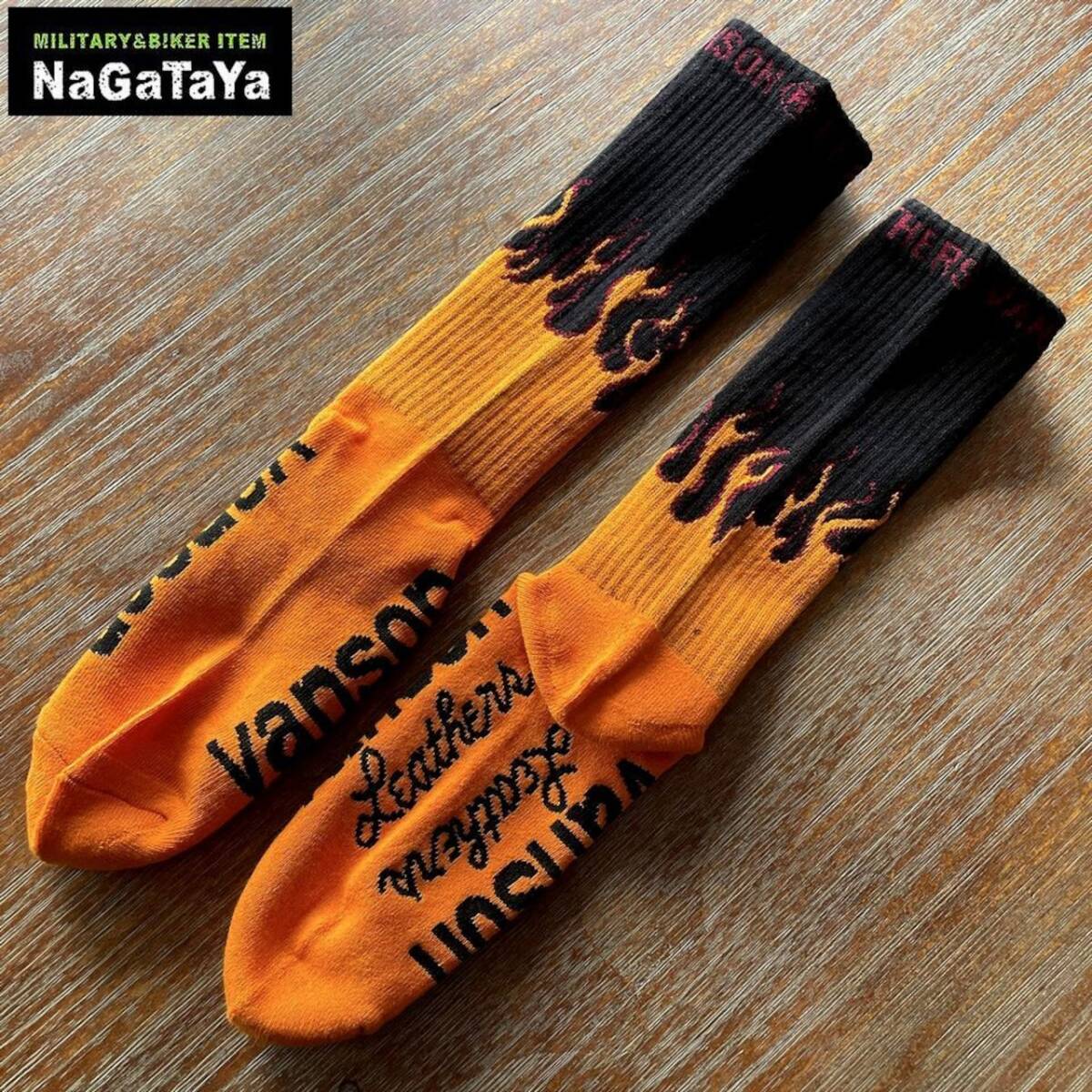 - VANSON バンソン NVSC-2401 ジャカード ソックス 靴下 クルー丈 抗菌防臭 メンズ ファイヤースタイル ブラック×オレンジ ファイヤー 炎