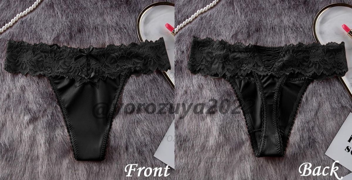 - 170-129-6 お花レース 光沢 セクシー 勝負下着 Tバック【ブラック,XLサイズ】レディース 女性 ランジェリー エロ 過激 パンツ ショーツ.1