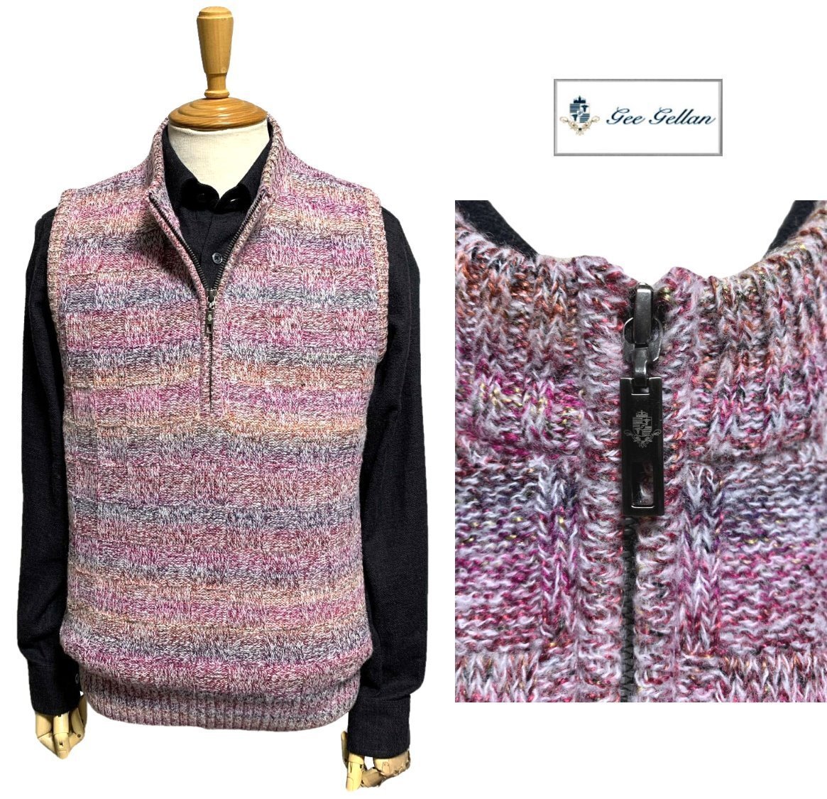 - GEE GELLAN ジーゲラン GEEGELLAN 霜降りニット ブロックチェック ハーフジップ ニットベスト ピンク size46 M