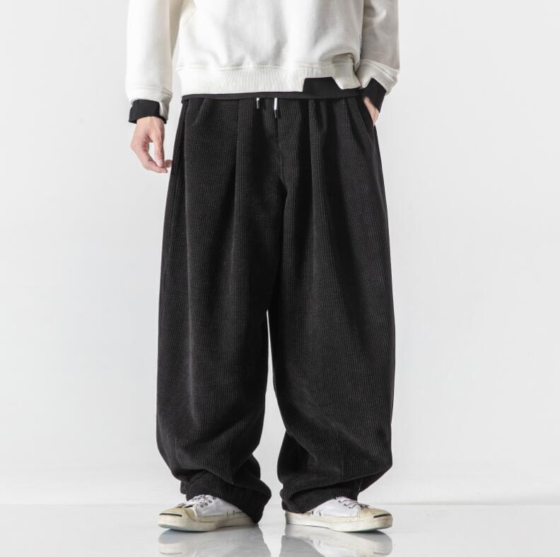 - サルエルパンツ メンズ カーゴパンツ ワイドパンツ 厚手 ゆったり カジュアル チノパン ロングパンツ コーデュロイ M~5XL 黒