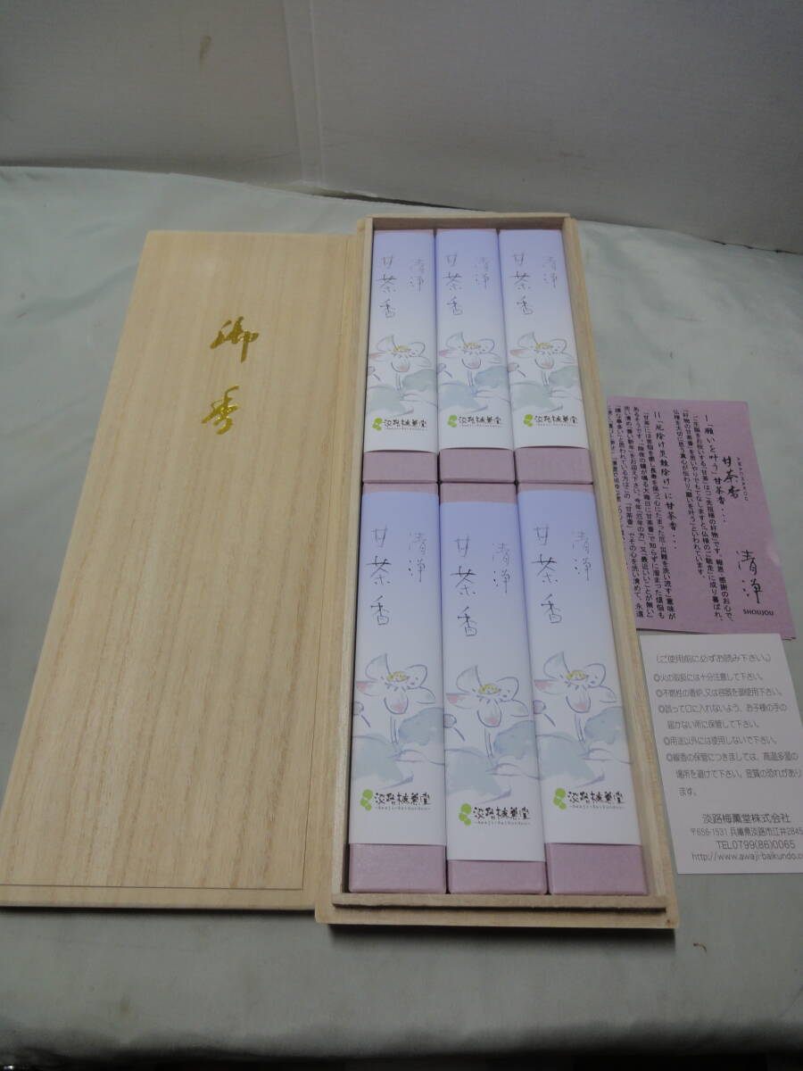 - 木箱入り【淡路梅薫堂 御香お線香 清浄甘茶香 6入】未使用品