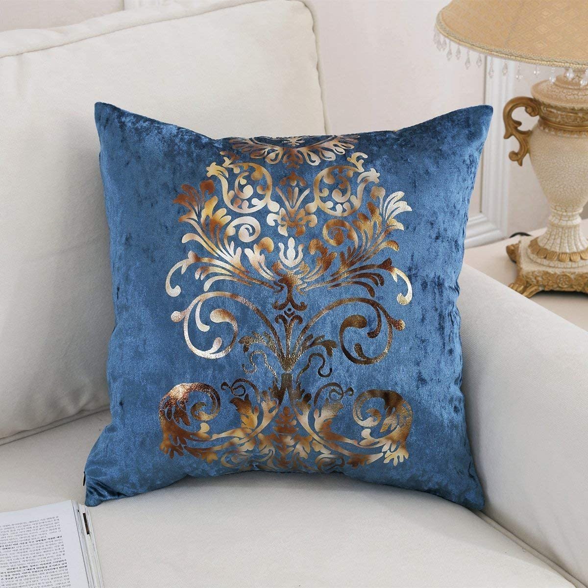 - 【送料無料】 ゴージャス クッションカバー ブルー 青 2枚セット 45×45cm ベルベット おしゃれ クラシック モダン ゴールド 金色