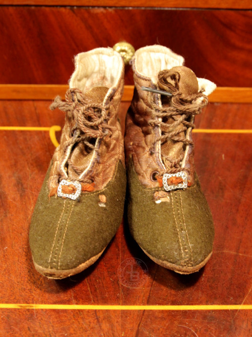 - 古い小さなブーツ キルティング フェルト ブラウン