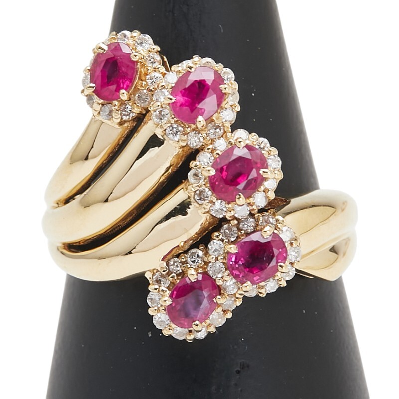 - K18YG イエローゴールド ルビー1.40ct ダイヤ0.31ct リング 指輪 レディース 16号 中古