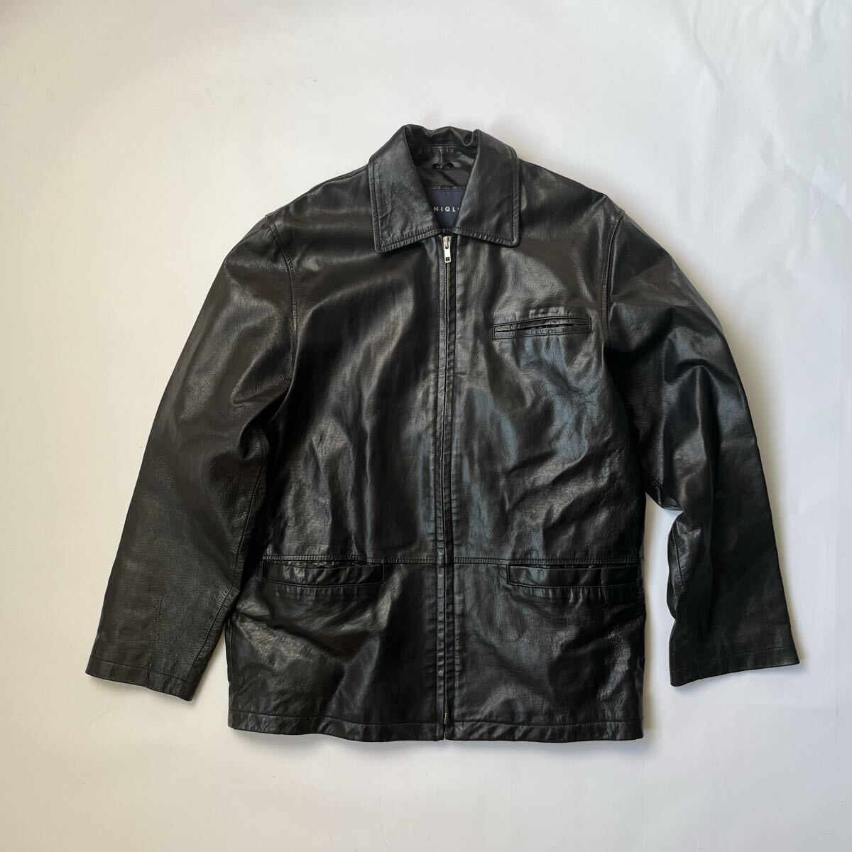 - ユニクロ オールド レザージャケット シングル 本革 ブラック 黒 S ライダースジャケット