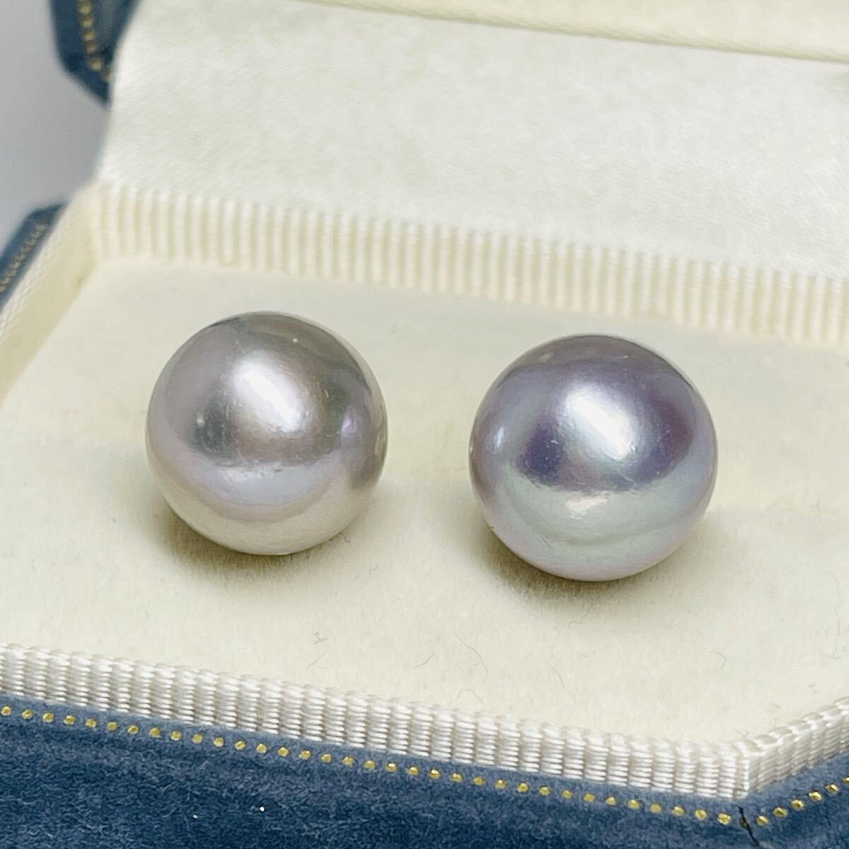 > 極系少カラー エジソンパール ピアス 本真珠 オーロラブルー 無調色12.6mm 照り良く パールピアス 極照り 天然真珠 発色抜群 直結