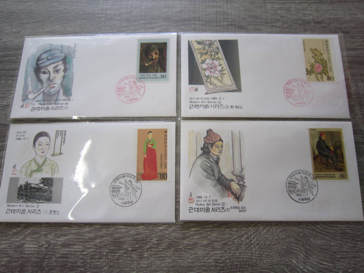 - (記念印有/初日カバー) 韓国 近代美術シリーズ (3) 封筒 切手 郵便 郵趣 コレクション まとめ売り 4枚セット 12