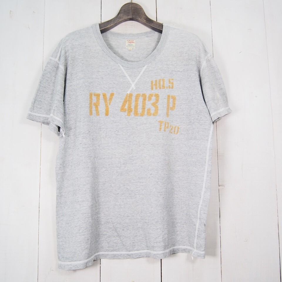 - BARNS OUTFITTERS バーンズアウトフィッターズ 前Vガゼット フェードTシャツ 染み込みプリント(40)杢グレー/日本製