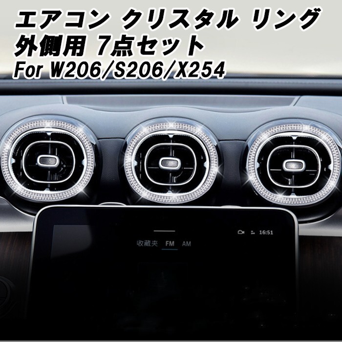 > ベンツ エアコン リング クリスタル 外側タイプ 7個セット W206 S206 X254 Cクラス GLC スワロフスキー風 ラインストーン アウターリング