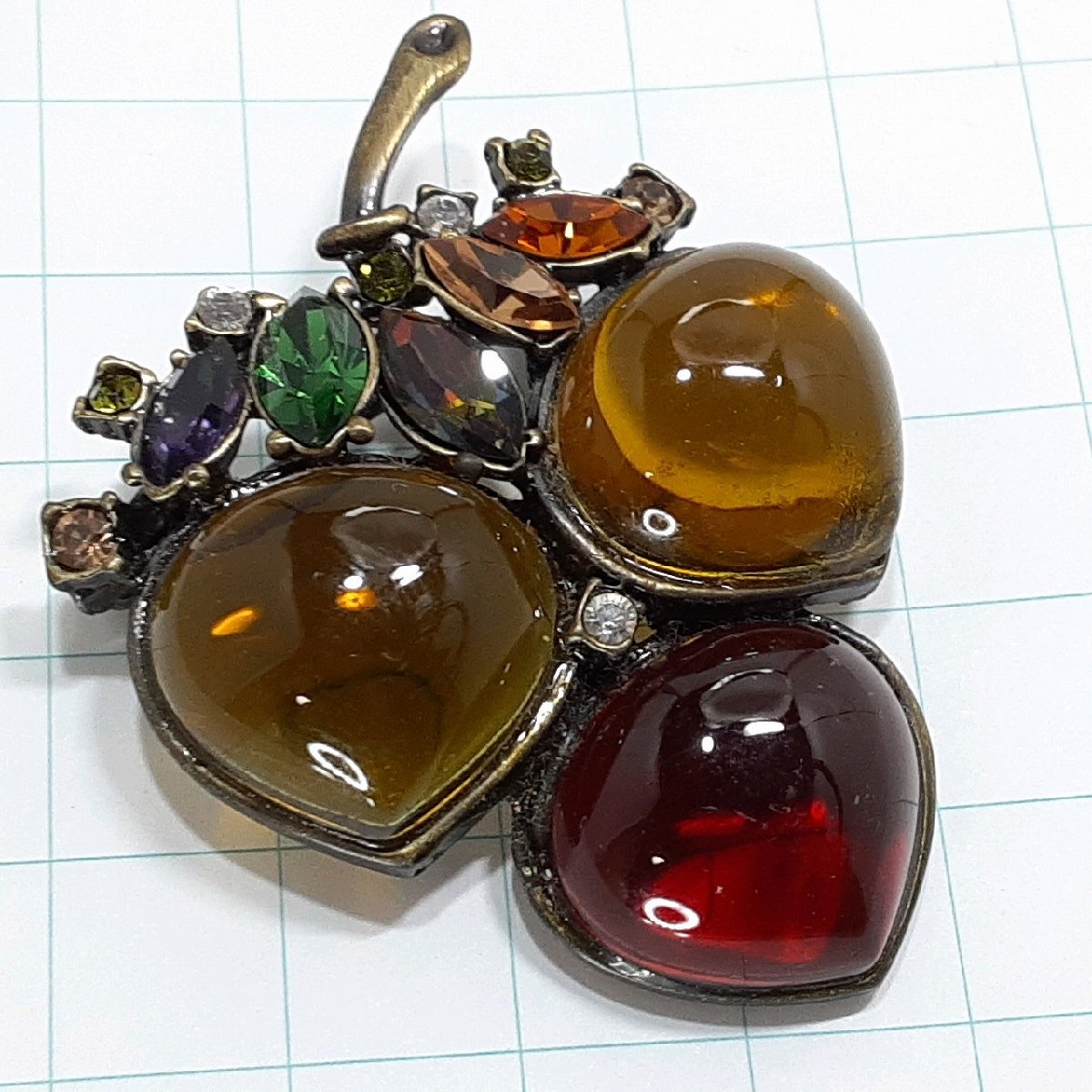 - 送料無料)ビンテージ☆ラインストーン ブドウ☆アンティーク ブローチ A32025