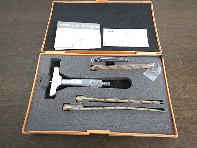 > ミツトヨ・mitutoyo デプスマイクロメータ☆DMC60-100 測定範囲0-100mm ベース寸法63.5mm×16mm 説明書付・ケース付