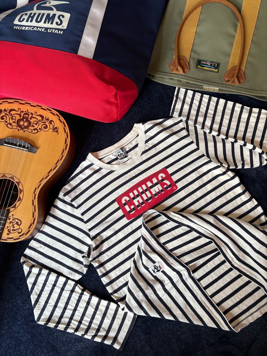 > 超美品 定価4,950円 CHUMS チャムス ロンT クルーネック 長袖 マリンボーダー Tシャツ ブービー ロゴ ロング スリーブ sizeM CH01-1320