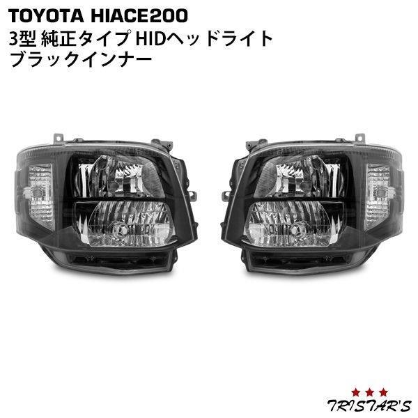 > ハイエース 200系 3型 HIDヘッドライト ブラックインナータイプ 左右セット レベライザー付き