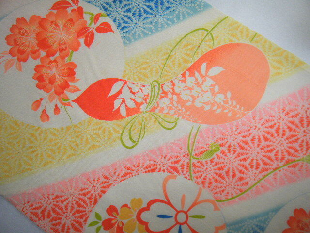 > :布花525:モスリン 桜・ひょうたん・麻の葉模様などの柄 126㎝×35㎝ 文化人形 細工物 パッチワーク ハンドメイド ハギレ