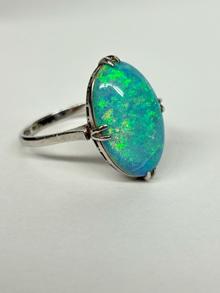 - pm900刻印 大粒 オパール リング アンティーク 指輪 千本透かし