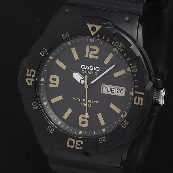 - 稼働 カシオ QZ MRW-200H ブラック文字盤 ラウンド デイデイト メンズ腕時計 2000000 NSK OMI