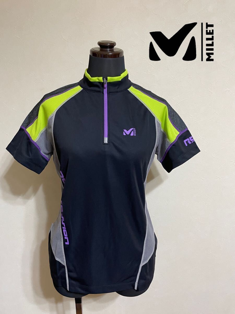 > 【未使用品】 MILLET ミレー アウトドア レディース 切替し ロックパフォーマンス ハーフジップ プルオーバー ウェア サイズ90 (S)半袖