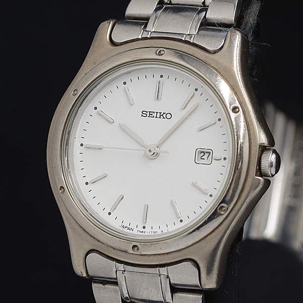 - 稼動 セイコー 7N82-0790 QZ 白文字盤 デイト レディース腕時計 OGH 2000000 NSK