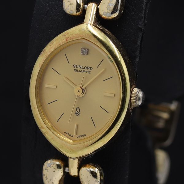 - 稼働 サンロード L5505 石付 QZ イエロー文字盤 レディース腕時計 TKD 2000000 NSK