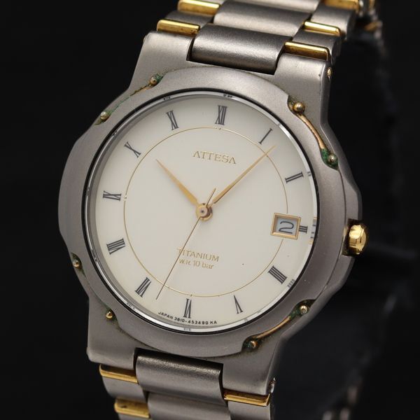 - 稼働 シチズン アテッサ QZ チタニウム アイボリー文字盤 3810-451694 メンズ腕時計 KMR 2000000 NSK