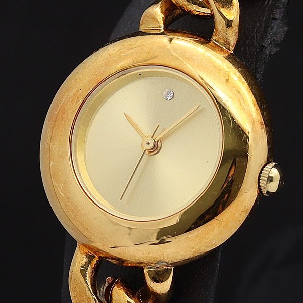 - 稼働 良品 ギラロッシュ QZ ゴールド文字盤 石付 ラウンド レディース腕時計 IKE