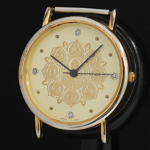 - 稼働 アンティーク QZ ゴールド文字盤 石付 ラウンド メンズ腕時計 OSW 2000000 NSK