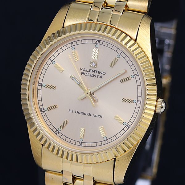 - 稼動 良品 ヴァレンチノロレンタ QZ ラウンド ゴールド文字盤 メンズ腕時計 2000000 NSK MTM