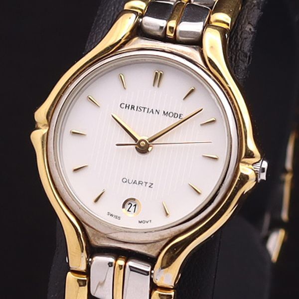 - 稼働 良品 クリスチャンモード QZ デイト ラウンド 白文字盤 レディース腕時計 YSD