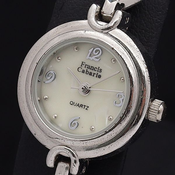- 稼働 良品 フランシスキャバリエ QZ ホワイトシェル文字盤 石付 ラウンド レディース腕時計 IKE