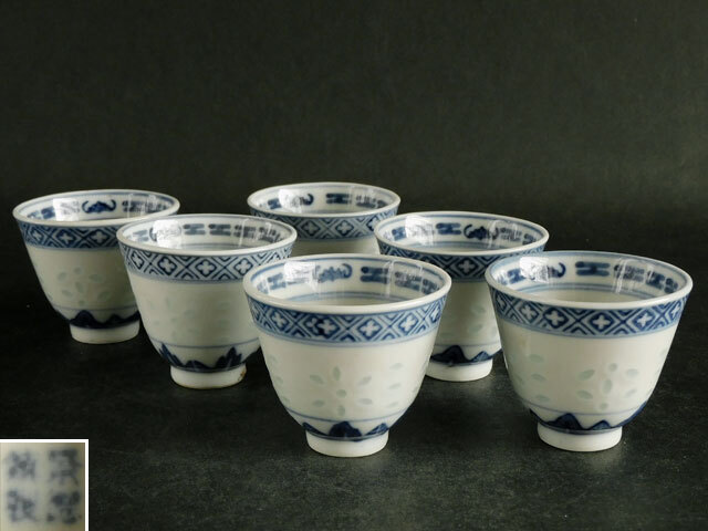 - 中国 景徳鎮製 蛍手 玉露碗 煎茶碗 六客