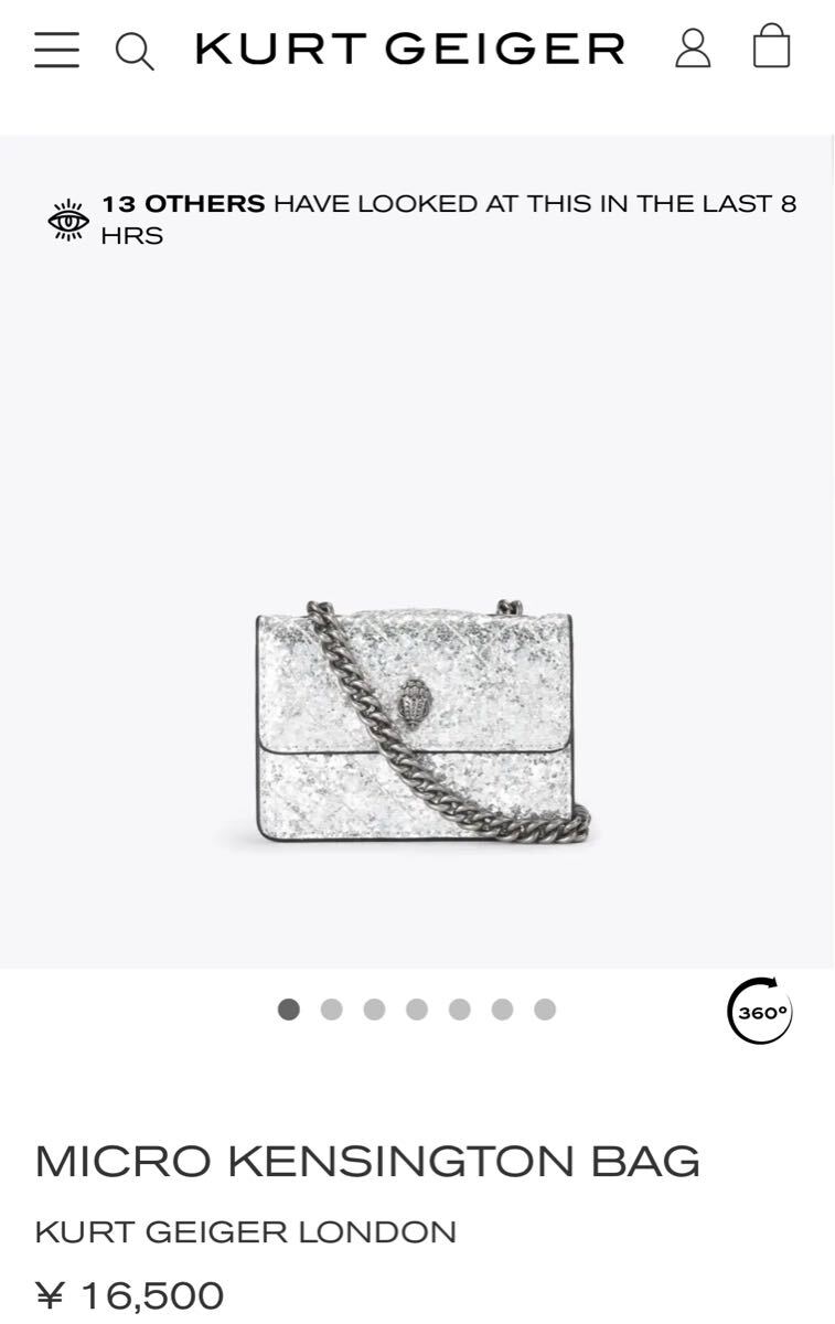> 未使用 KURT GEIGER LONDON Micro Kensington Bag シルバー チェーン ショルダー グリッター 新品 定価¥16,500