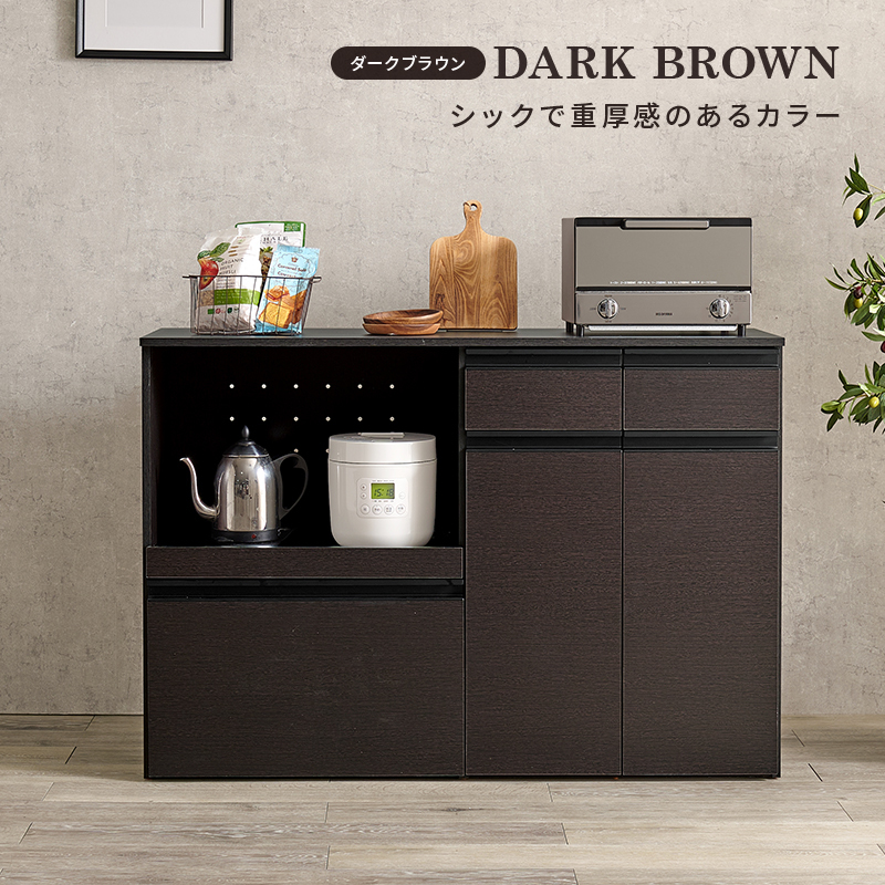 - カウンター キッチンカウンター キッチン収納 幅118 レンジ台 ダークブラウン色