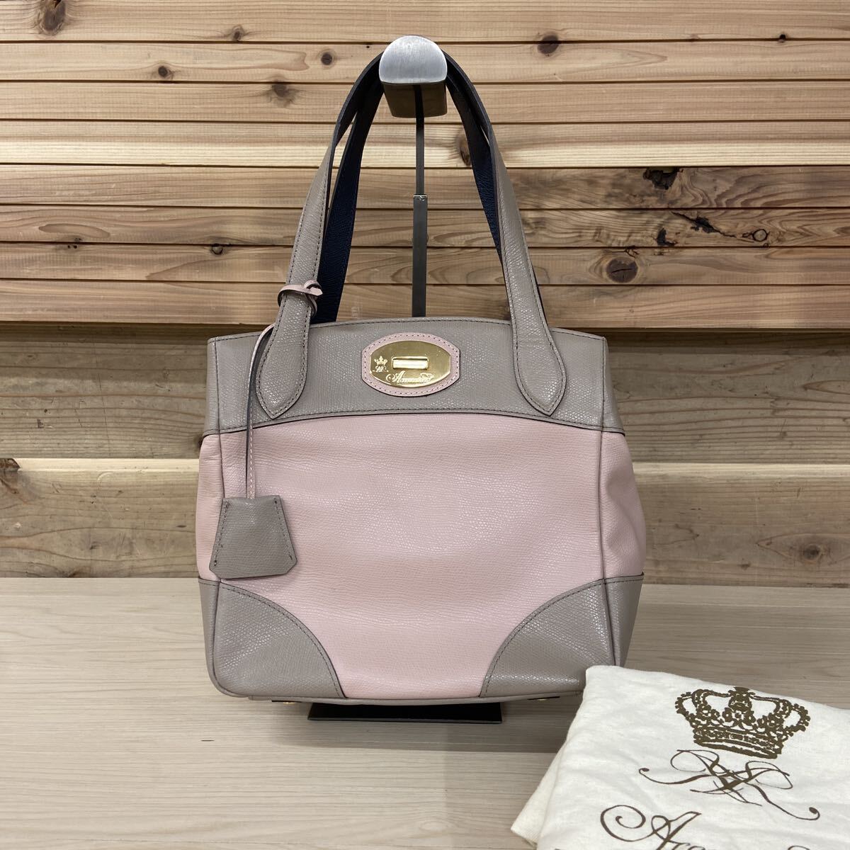 - 18 A.D.M.J エーディーエムジェイ ピンク系 レザー スワロフスキー ハンドバッグ レザー