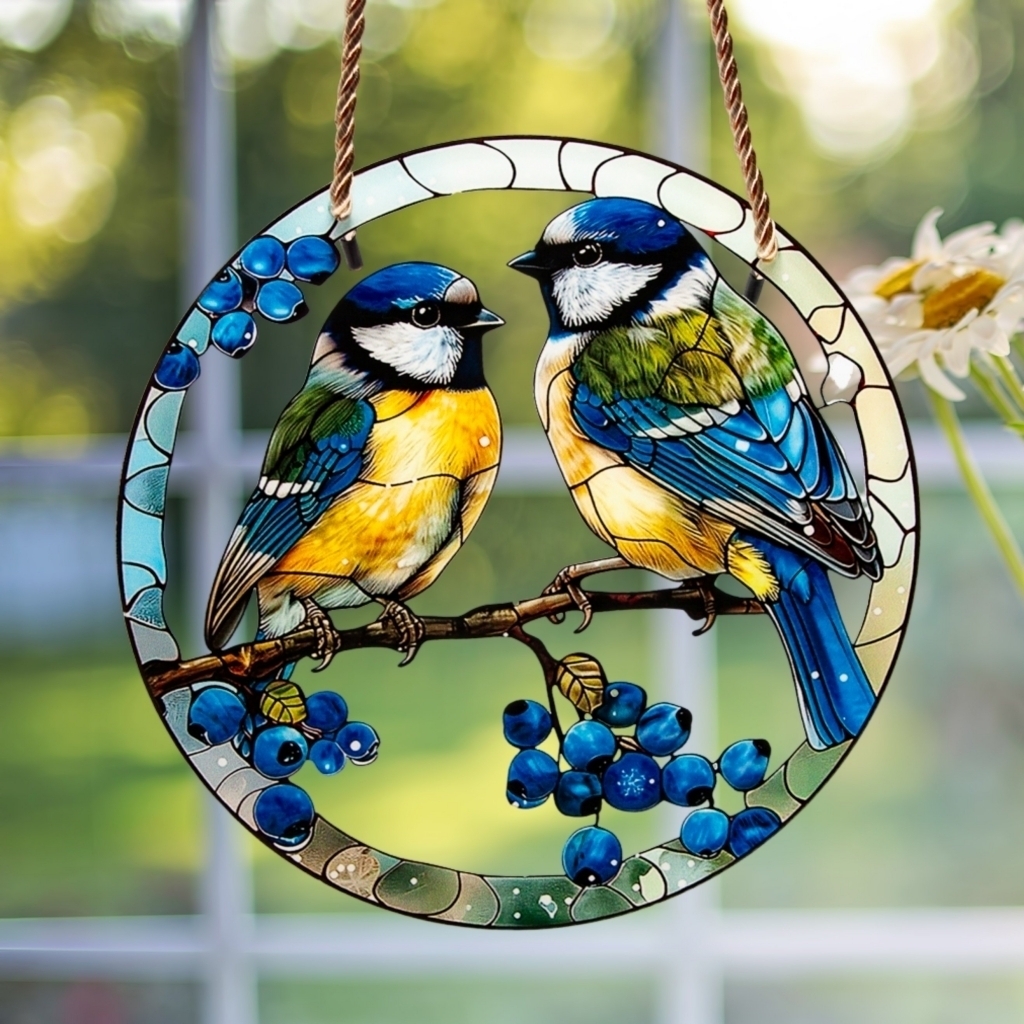 - 青い2羽の小鳥のサンキャッチャー 窓辺の飾り 新品