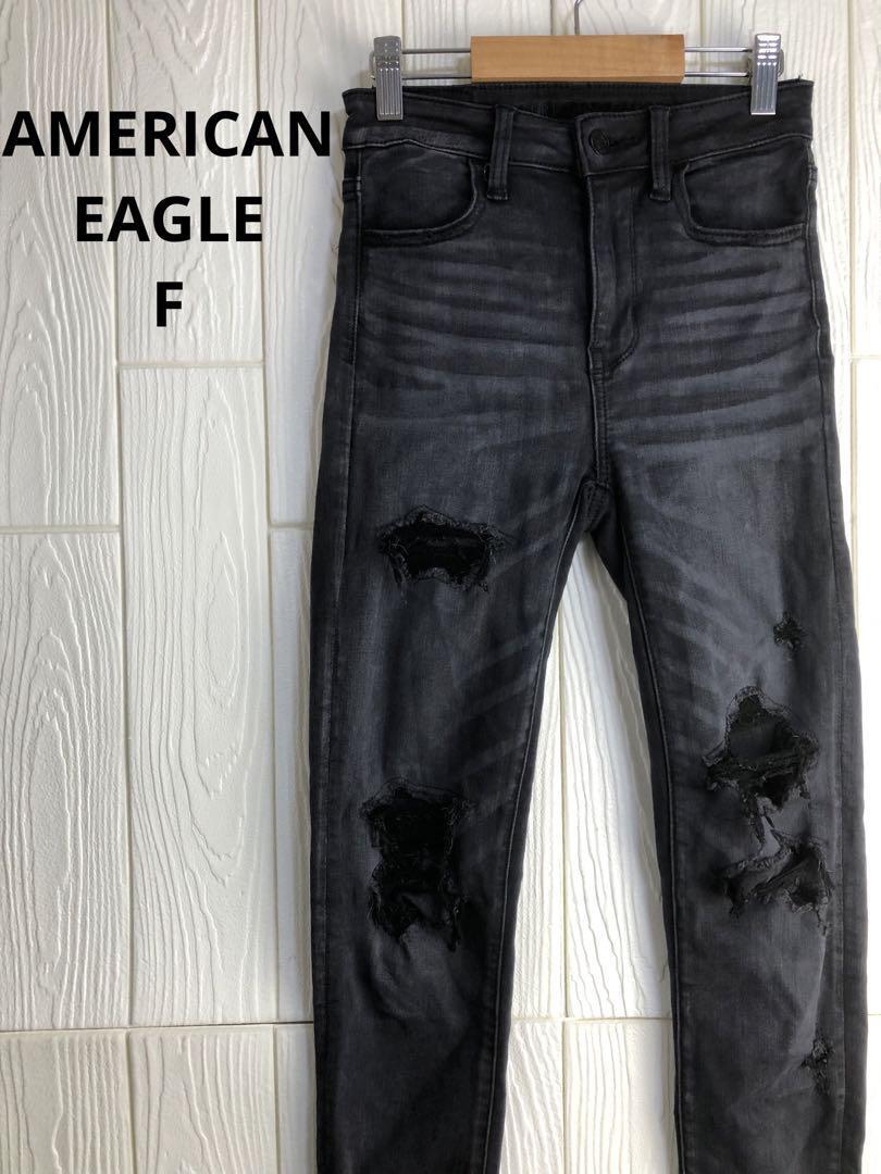 > AMERICAN EAGLE ダメージ加工 ダークグレー スキニージーンズ