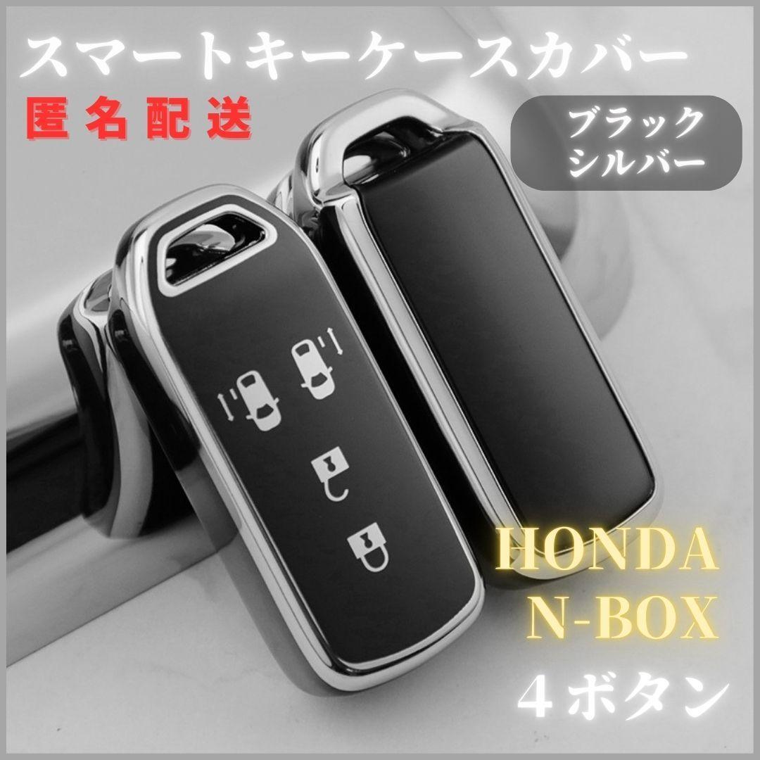 - キーケースキーカバーHONDAホンダNシリーズ (4ボタン ) N-BOXスマートキー黒銀