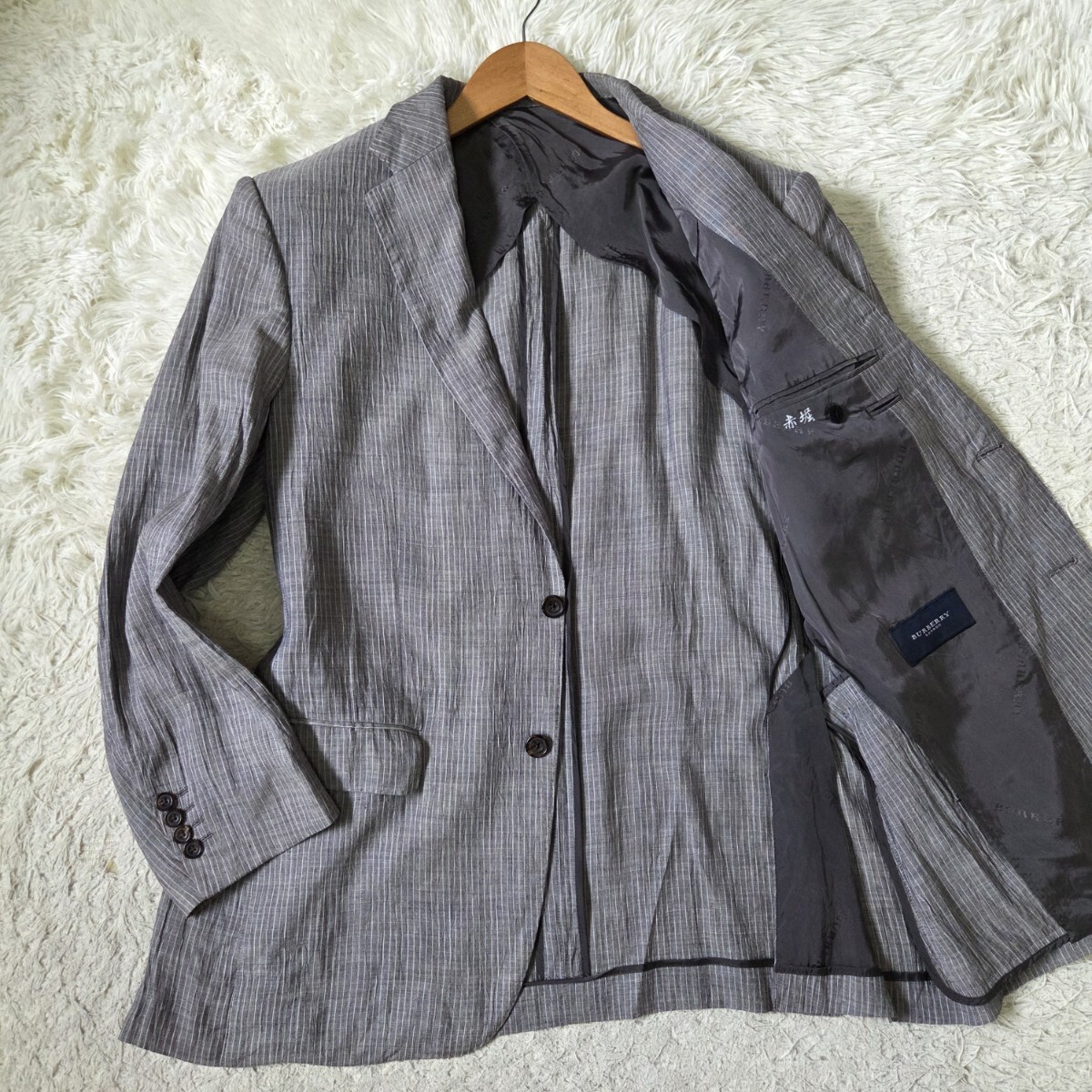 - バーバリー ロンドン【リネン100% ピンストライプ シアー 希少サイズBB6 実寸 XL 相当】BURBERRY LONDON テーラードジャケット グレー 麻