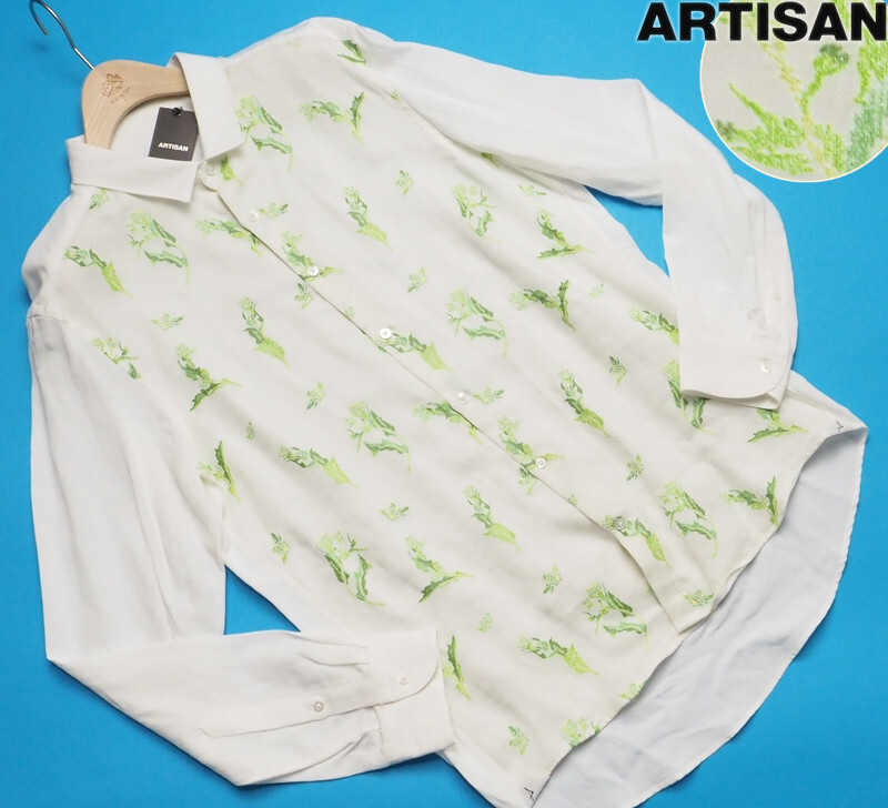 > 新品サンプル定価4.7万円 ARTISAN アルチザン 日本製 文化企画 ボタニカル ジャガード 長袖シャツL白(02) 86IG10