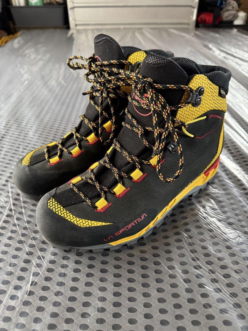 ブランド: LA SPORTIVA ラ・スポルティバ 商品名: TRANGO TECH LEATHER GTX トランゴテックレザー ゴアテックス カラー: ブラックxイエロー サイズ:41.5(希少サイズ) 箱は捨ててしまったためないです。