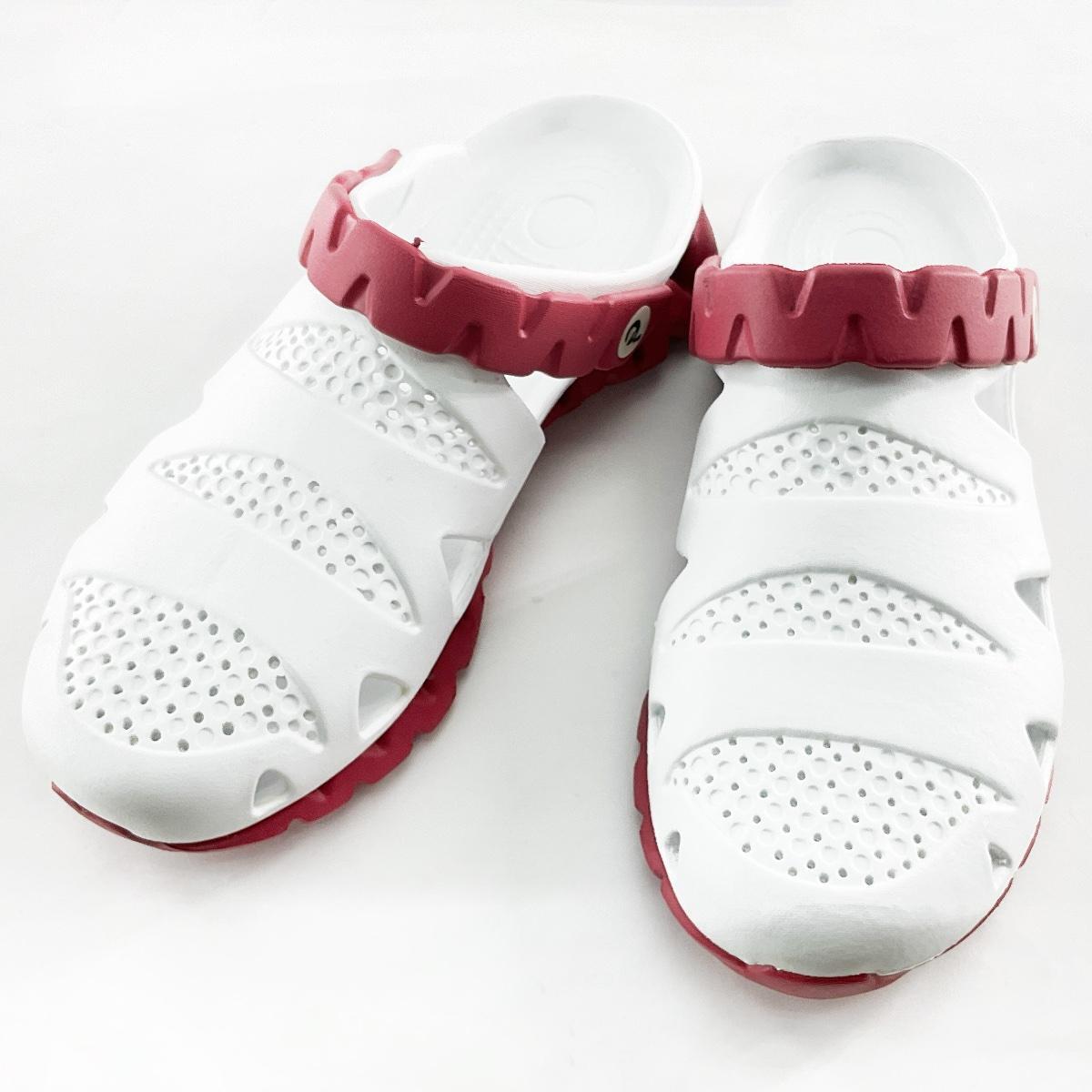 - 訳あり EVAサンダル 2WAY ギザギザソール LL 24.0~24.5cm ホワイトxバーガンディ