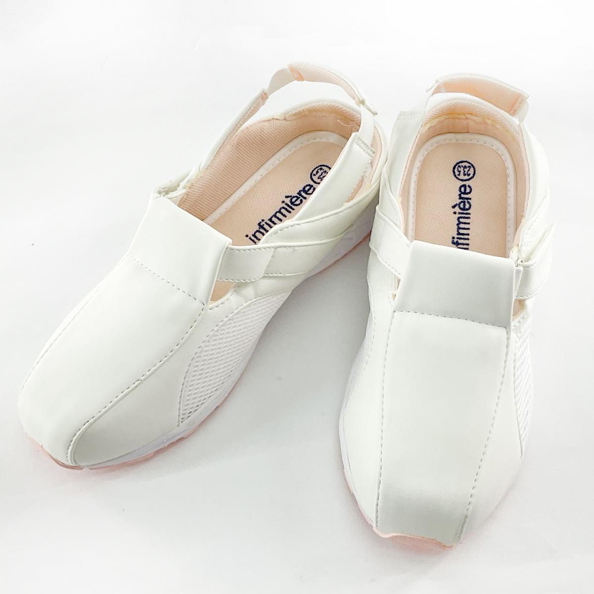 - ナースシューズ 2WAY 看護師 介護士 23.5cm 幅広4E ホワイトxピンク