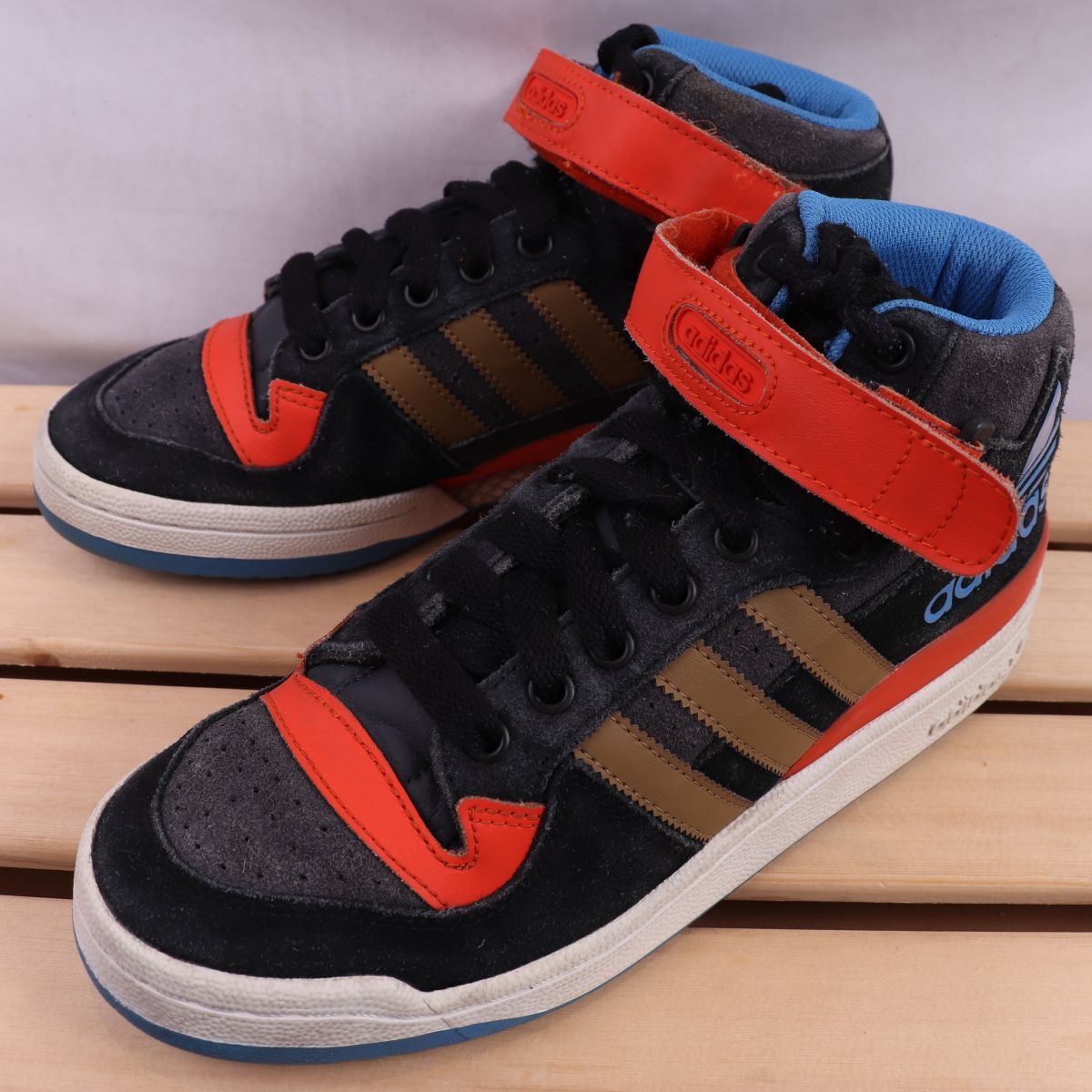 > z1855 アディダス フォーラム ミッド US7 1/2 25.5cm/黒 ブラック オレンジ 青 茶 白 マルチ adidas sFORUM MID メンズ スニーカー 中古