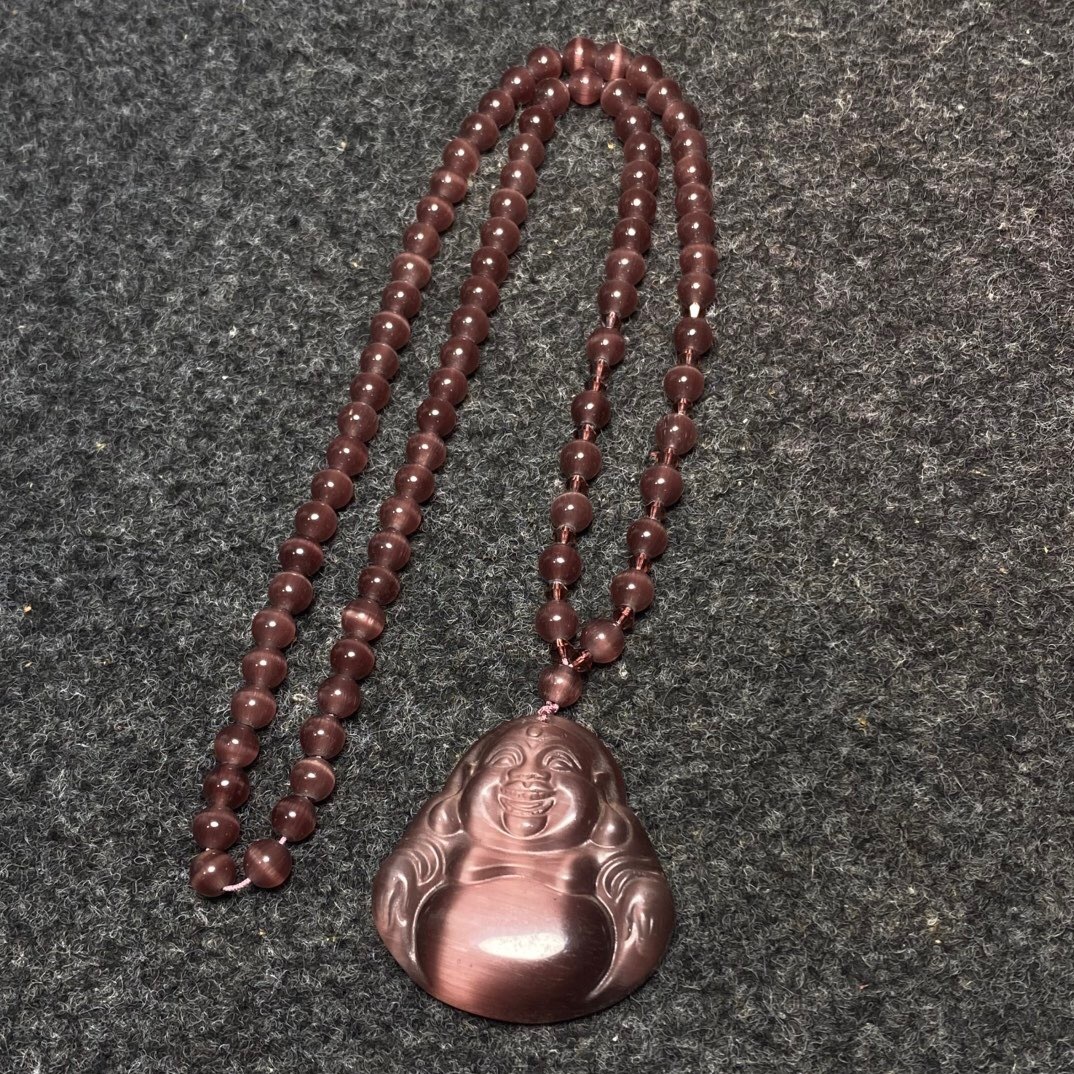 - 蔵友旧蔵出 猫目石製 細密彫 彌勒仏像 吊墜 盒付 根付裝身具 希少珍品 貴重品 置物 古賞物 中国古玩 中国古美術品