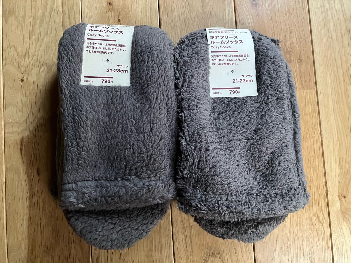 - 新品 無印良品 ボアフリースルームソックス 21〜23センチ 茶 2足セット
