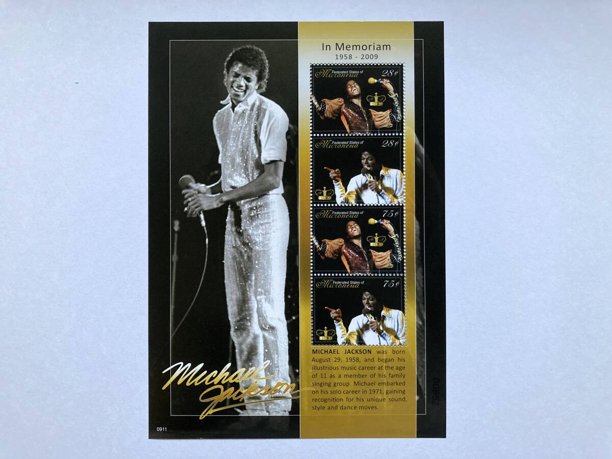 - 外国切手: ミクロネシア切手 「マイケル・ジャクソン追悼」4種m/s 未使用