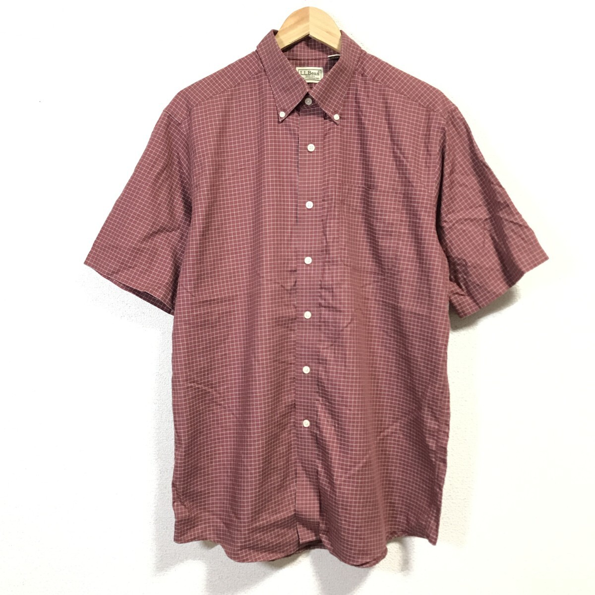 - Ye1967dL L.L.Bean エルエルビーン サイズM ボタンダウン 半袖シャツ チェック柄 ボルドー レディース アウトドア カジュアル 古着